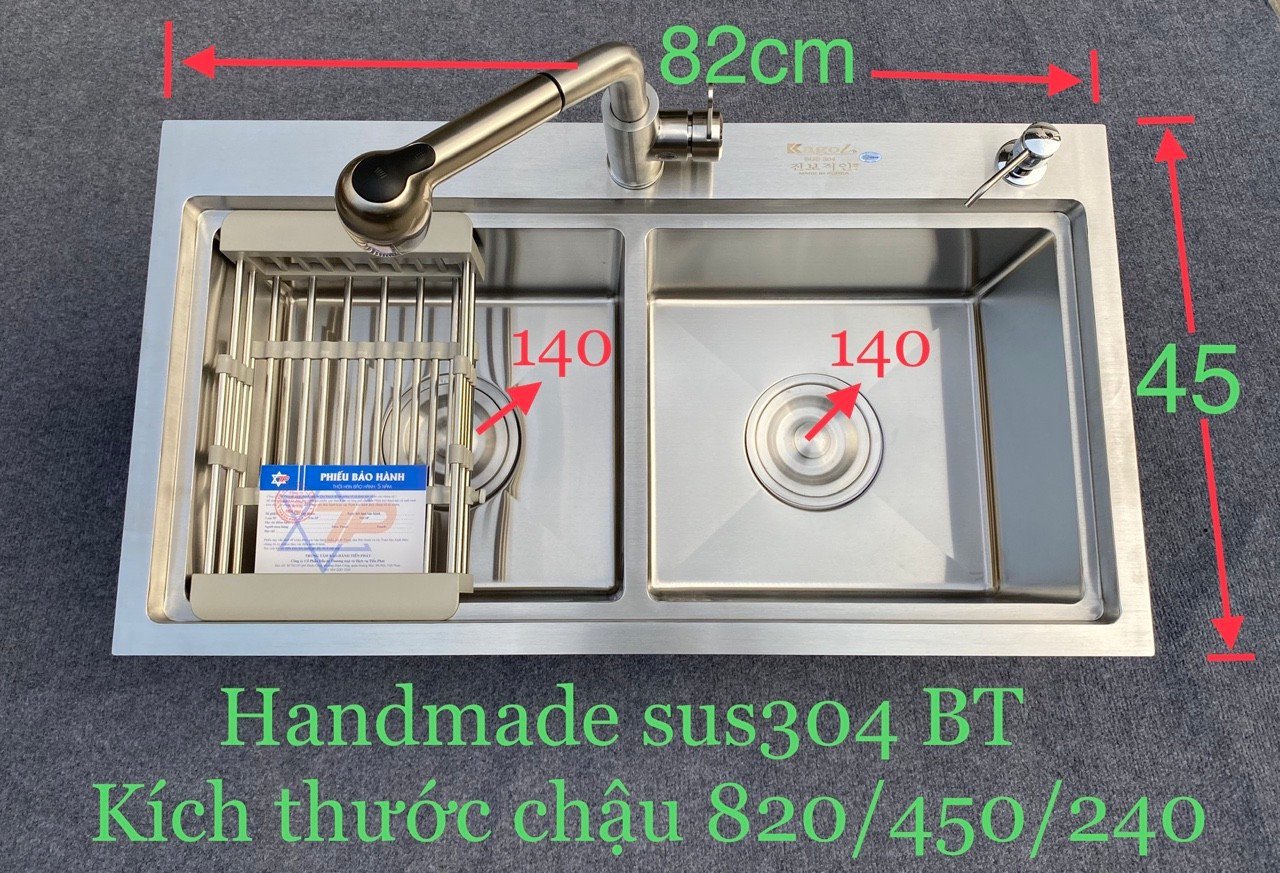 - Chậu rửa bát được sản xuất trên công nghệ tiên tiến của Hàn Quốc dập liền nguyên khối ( Không hàn mài )