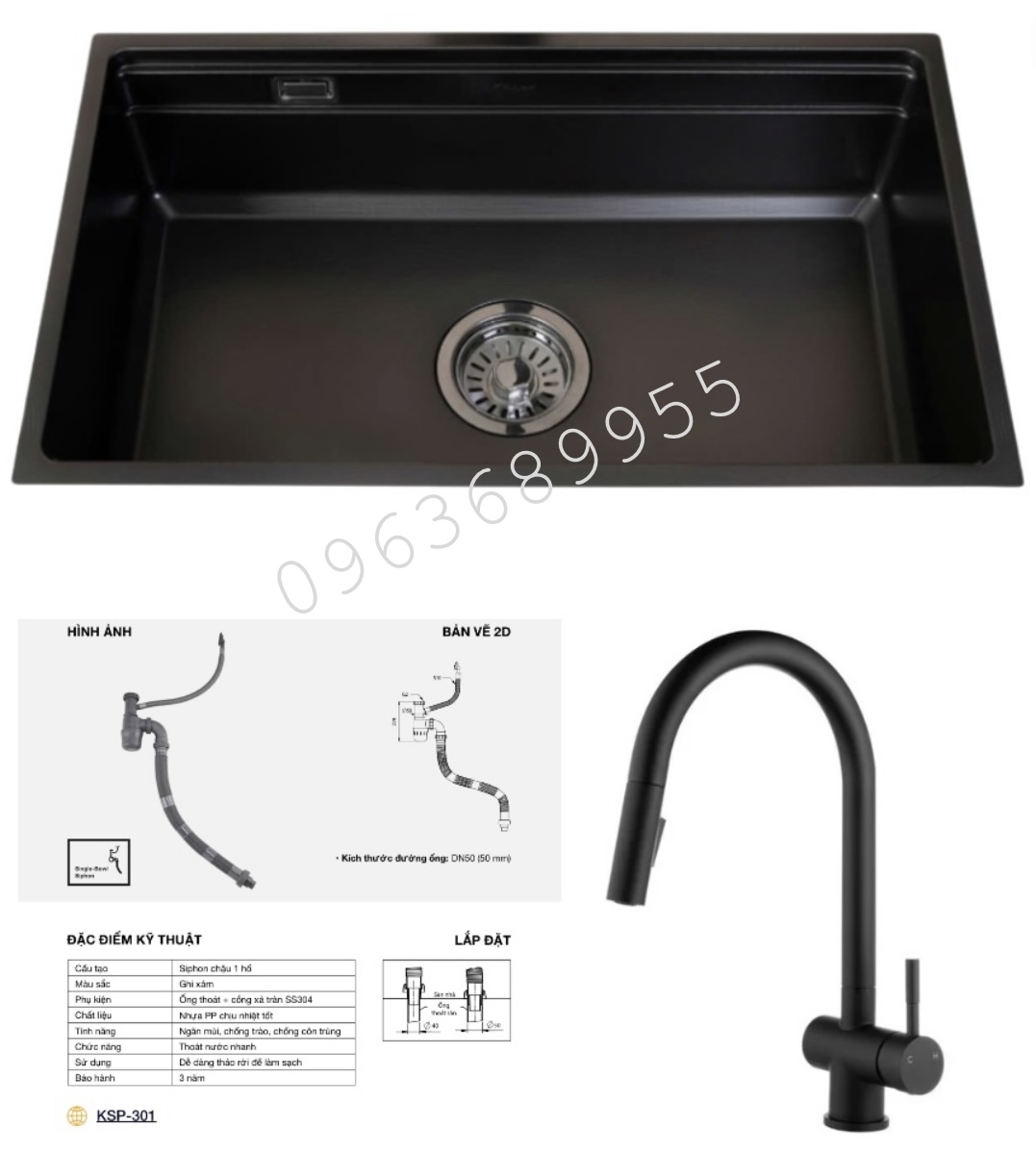 Thông tin sản phẩm Combo bộ chậu 1 hố nano đen cao cấp kèm vòi 8161FB-S76