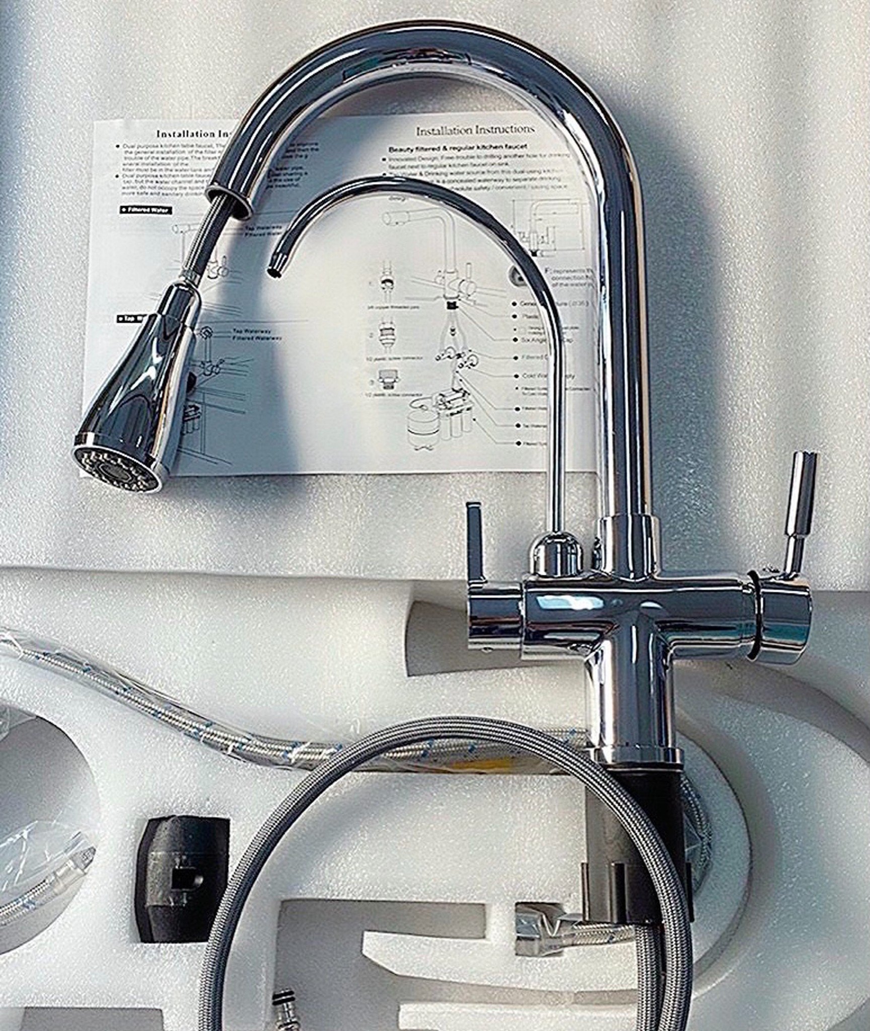 - Vòi rửa bát nóng lạnh,dây rút tiện lợi khi sử dụng, và thêm 1 đường nước sạch RO hoặc đường nước mưa ( tùy gia đình sử dụng )